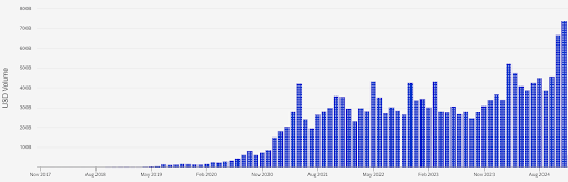 With more new consumer applications coming online, decentralized exchanges could continue to grow in relevance, further contributing to DEX growth.