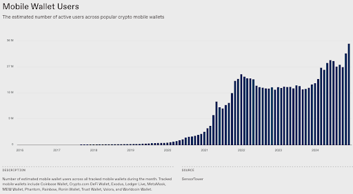 To unlock the next wave of crypto users, we need to move closer toward user experience (UX) parity with web2 applications. Mobile wallets will play a critical role here: There are hundreds of millions of “passive” crypto owners (people who own crypto but do not regularly transact onchain) that could convert into active crypto users. For that to happen, developers need to continue building new consumer applications, and consumers will need wallets to participate.