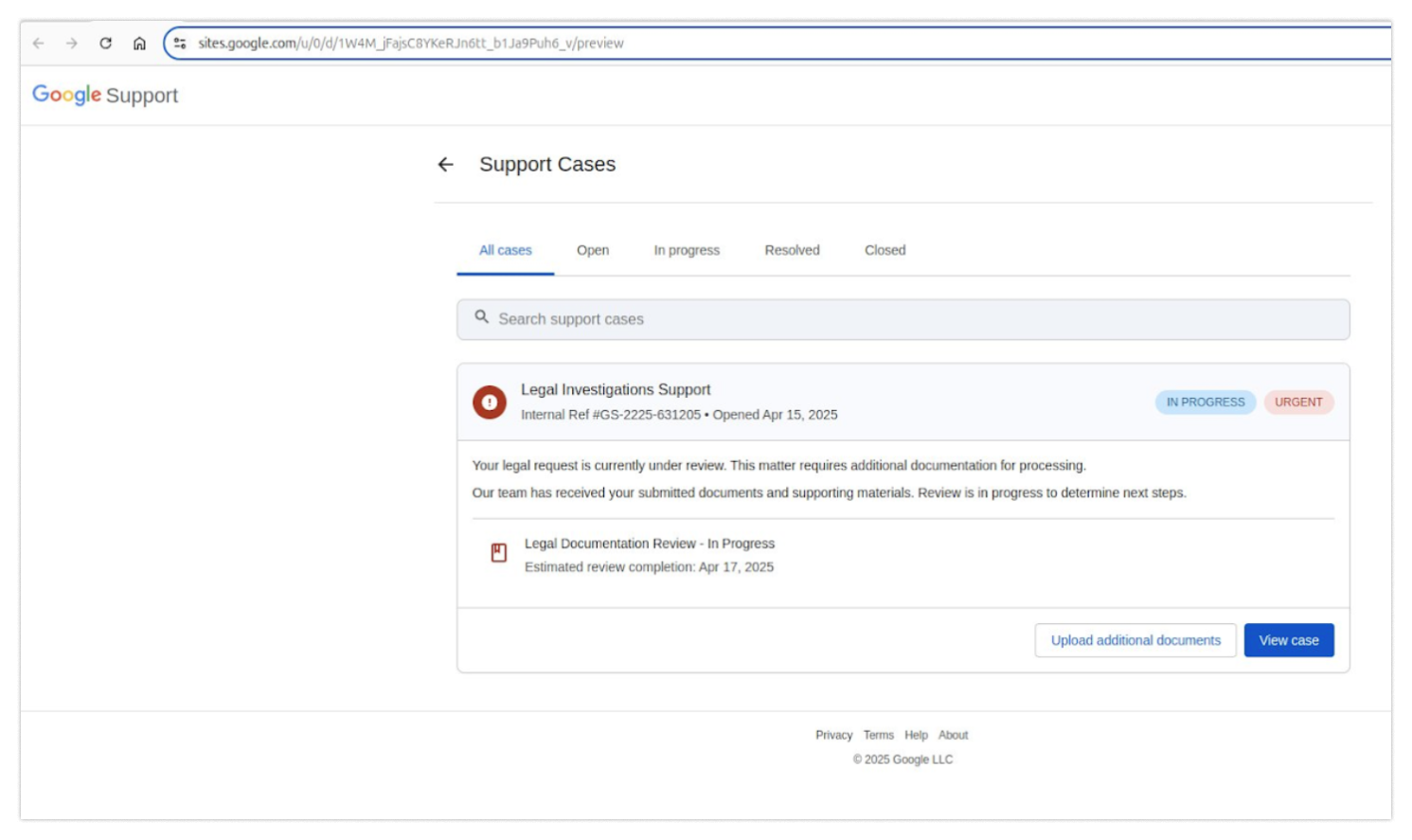 Why would you have any reason to believe it’s illegitimate? If you’re feeling panicked (honestly, I would be), you might click to view the case immediately. At this point, you would see something you’ve seen thousands of times before: a login page.