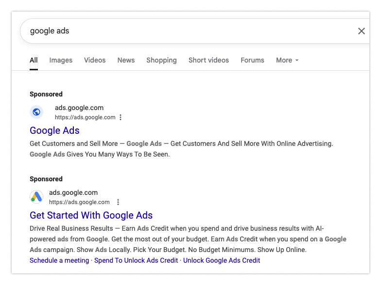 Let’s say you’re starting your day viewing and refining your advertisement campaigns. If you’re like many people, you may just type “google ads” inside your search bar. You see the following: