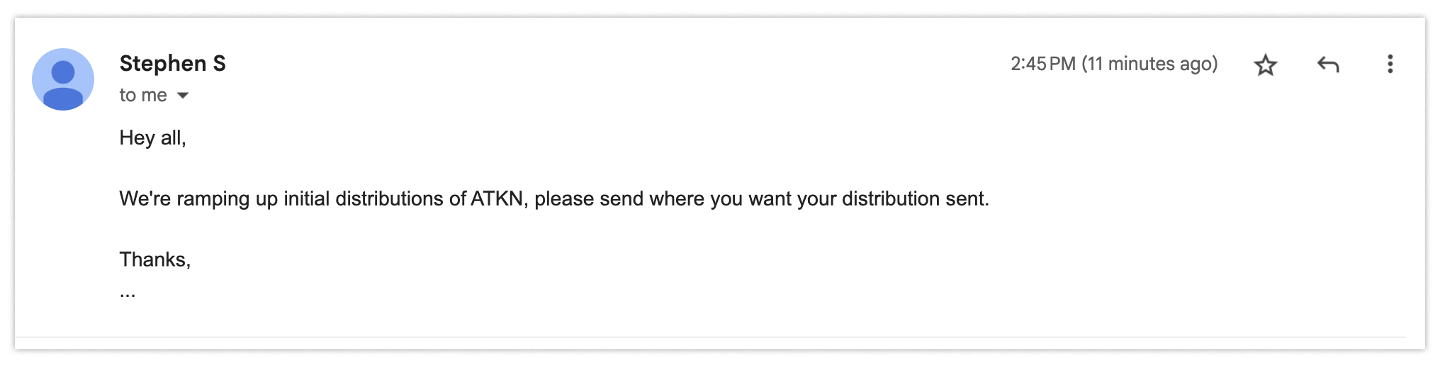 Fine, all good. You send an email confirming you got the updated information and use the revised information — in this case, an address for distributions.