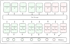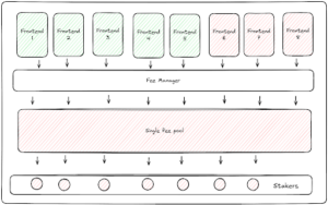 On the opposite end of the spectrum, fees from every front end could be pooled together — but this defeats the purpose of fee traceability. If all fees are pooled together, there’s no way to differentiate fees from compliant frontends versus non-compliant ones — one bad apple would spoil the barrel. Tokenholders would be forced to choose between not receiving any fees or stake in a pool where they would benefit from the illegal activities of non-compliant frontends in their jurisdiction — an option that could dissuade many tokenholders from participating or could revert the system to current suboptimal designs, where a DAO has to assess where fees can be applied.