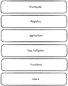 Let’s revisit the app token stack in greater detail. For a protocol to facilitate frontend staking, it would need to establish a registry smart contract that frontends would need to register with.