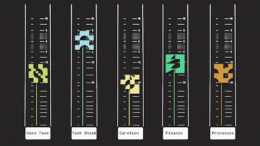 And once again, it isn’t all or nothing. Decentralization happens at a different pace along each MDU. For example, you might start to plan your finances in a way that keeps the option of “exit-to-community” open from day 1; establish a community treasury six months in; and then later switch to fully decentralized financial governance. And in parallel with that, you might maintain a centralized tech stack while iterating toward a stable product before looking for more peer-to-peer options.