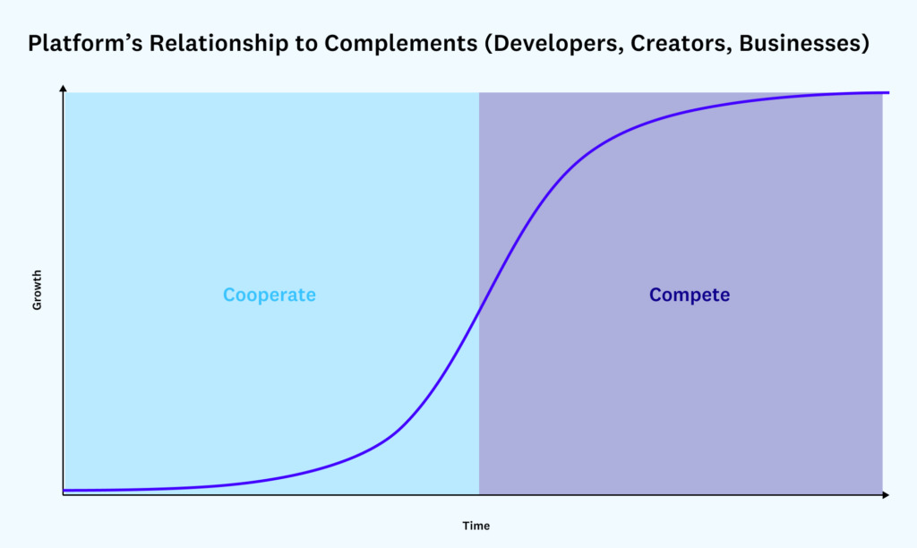 As companies grow, they are no longer able to maintain a sustainable relationship with these orbital network participants. The relationship between the company and the participants turns zero-sum, and in order to maximize profits, the company begins to extract value from these participants. This, according to Chris Dixon, is “Why Decentralization Matters”: