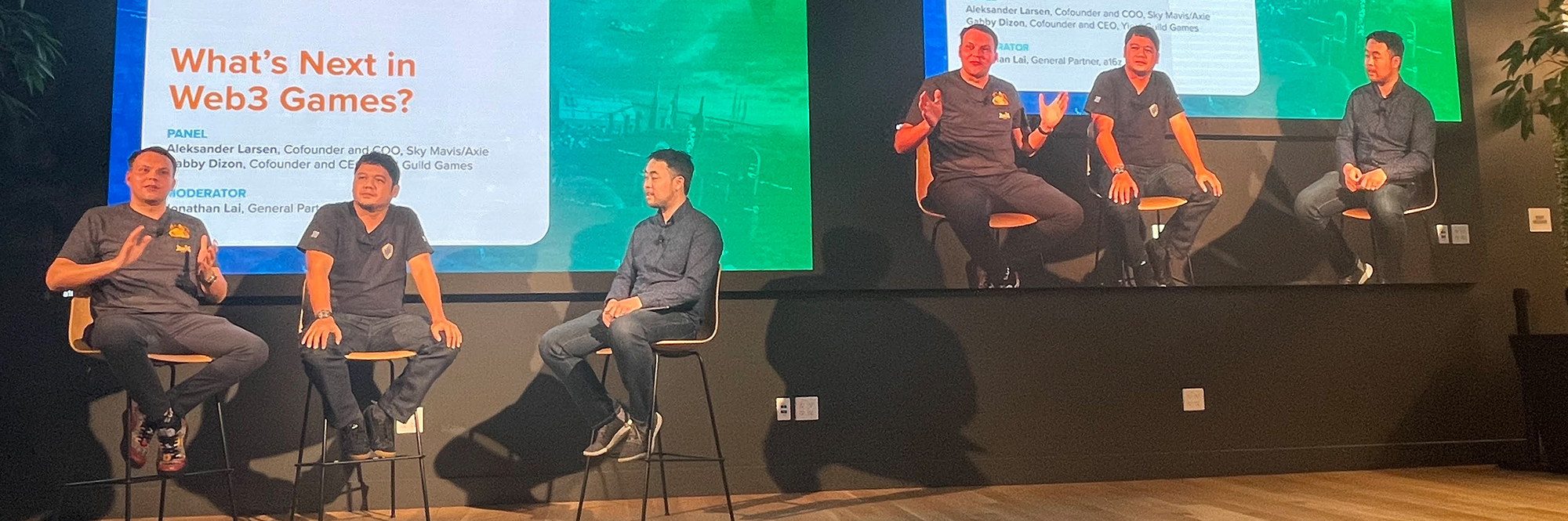 Jon: Thank you, everyone, for joining us. I’m Jon. I’m a general partner at a16z. Today we are talking about topics that I know are near and dear, and on everyone’s minds here at GDC, which are NFTs, Web3, and the impact in games. So, I’m honored to be joined by two luminaries in the Web3 games industry. Aleks Larsen, the cofounder and COO of Sky Mavis, which is behind Axie Infinity, and Gabby Dizon, the cofounder of Yield Guild Games.